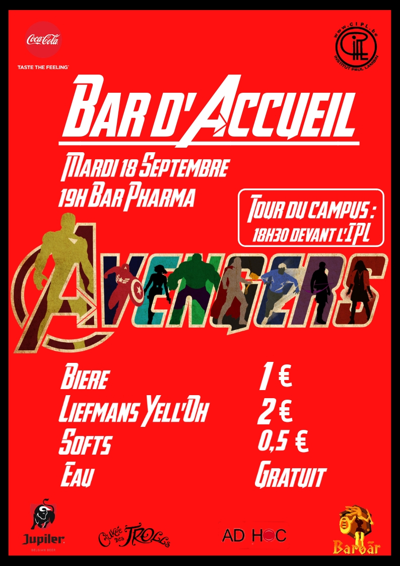 Viens donc prendre un verre avec nous le 18/09 en bar pharma ! Nous commencerons par te faire visiter le campus pour ensuite terminer au bar pharma où nos barmans auront le plaisir de t’offrir le premier verre mais présenterons également d’autres boissons à l’affiche.