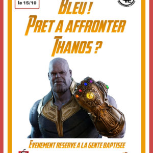 BLEU ! Le moment est enfin venu pour te mesurer à Thanos, mais en seras tu capable ? Anciens, poils plumes et externes venez soutenir votre fillot/fillotte pour son ULTIME épreuve ! Infos…